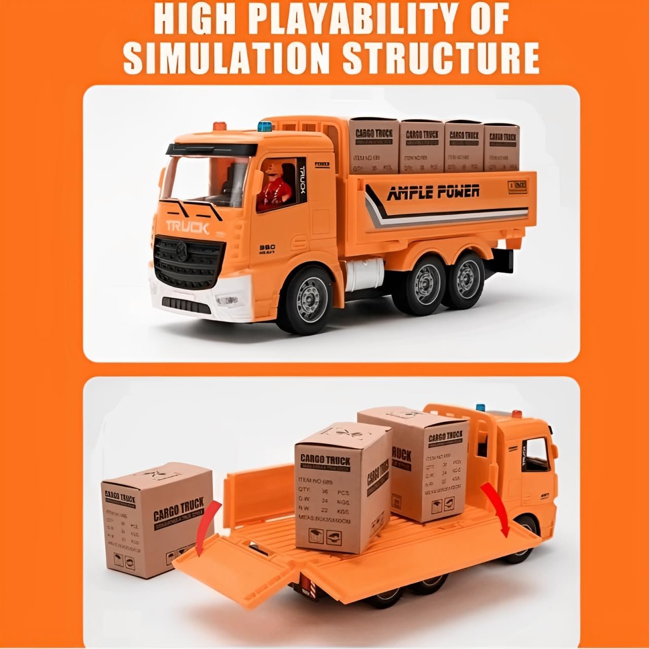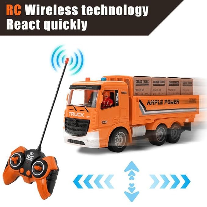 The truck offers smooth forward, backward, left, and right movement with easy remote control operation. Built from durable, high-quality plastic, it ensures long-lasting performance during indoor and outdoor play. The set includes cargo accessories for added fun and imaginative transport role-play. Rechargeable battery and charging cable are included for convenient use.