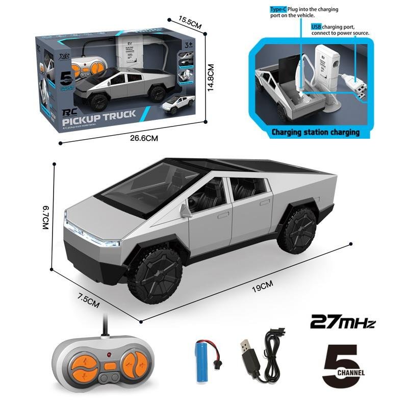 This stylish RC Pickup Truck features a modern, futuristic design inspired by real-life electric trucks. Built with durable plastic body and rugged wheels, it delivers smooth performance for indoor and outdoor play.